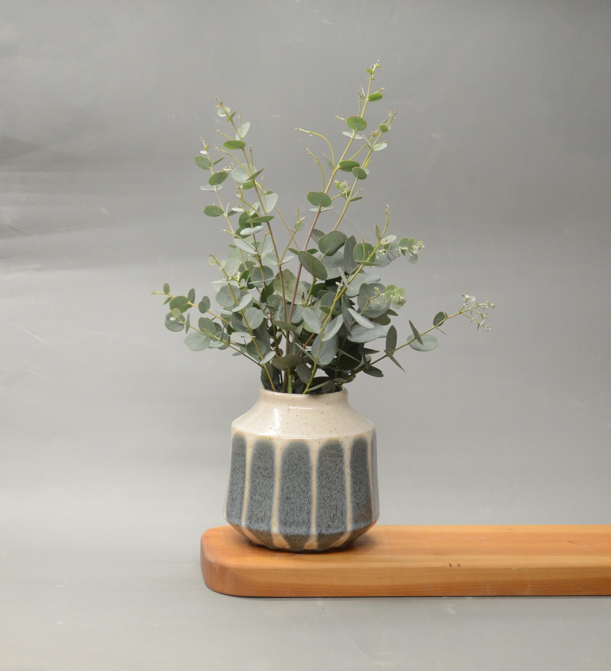 Diese Vase wurde von mir per Hand an der Töpferscheibe aus Steinzeugton gedreht, abgedreht und nach einem ersten Brand sorgfältig glasiert und ein zweites Mal gebrannt.