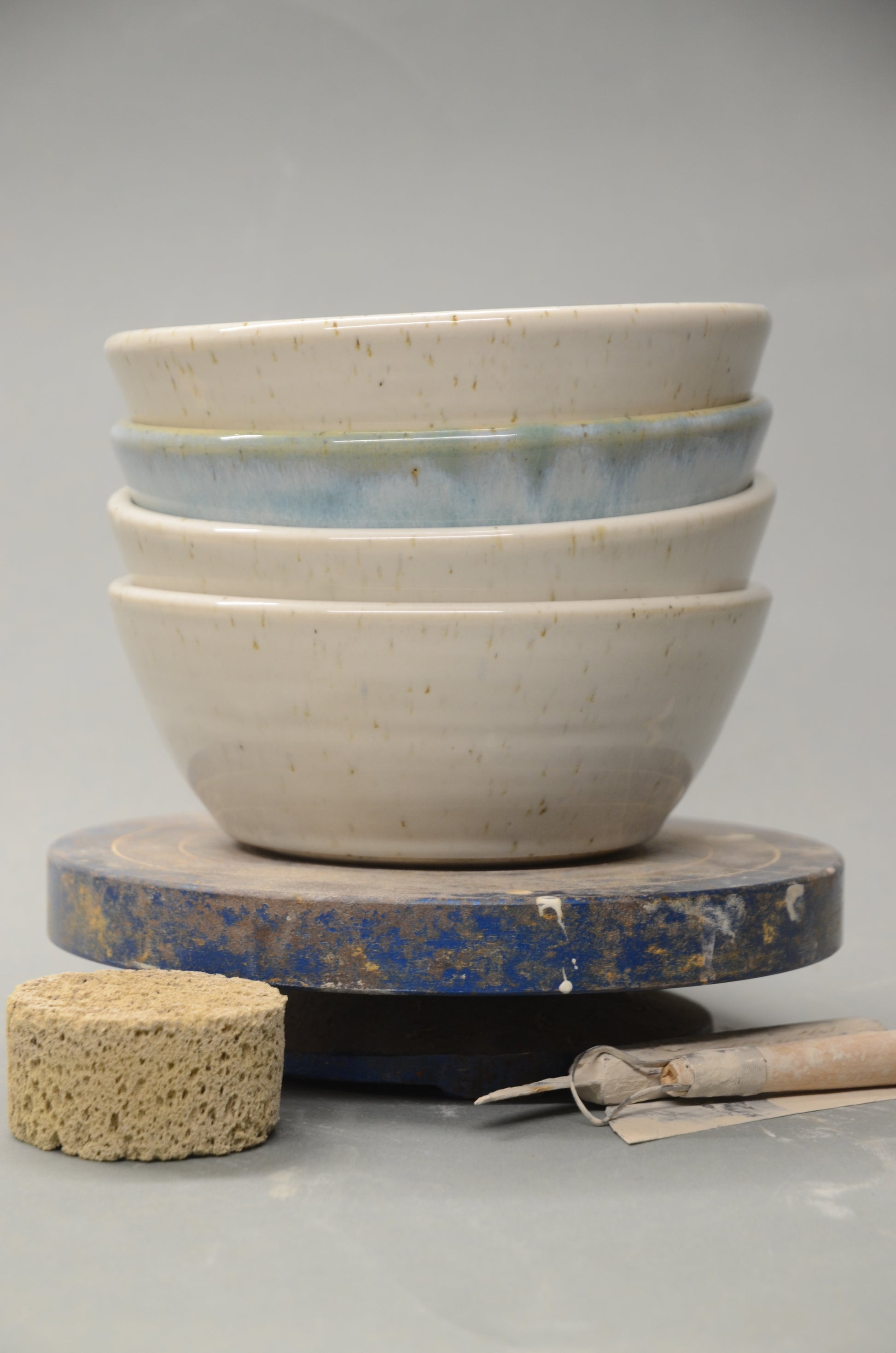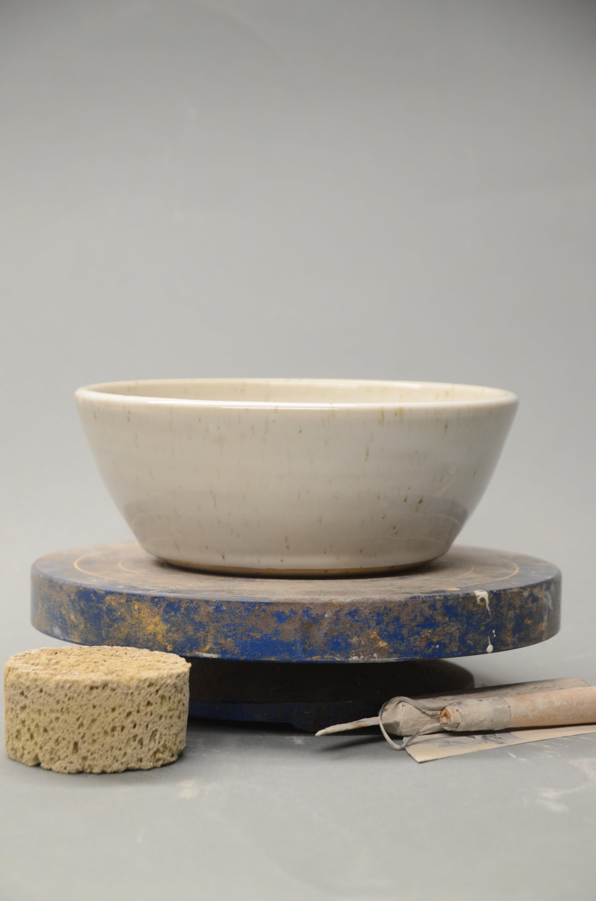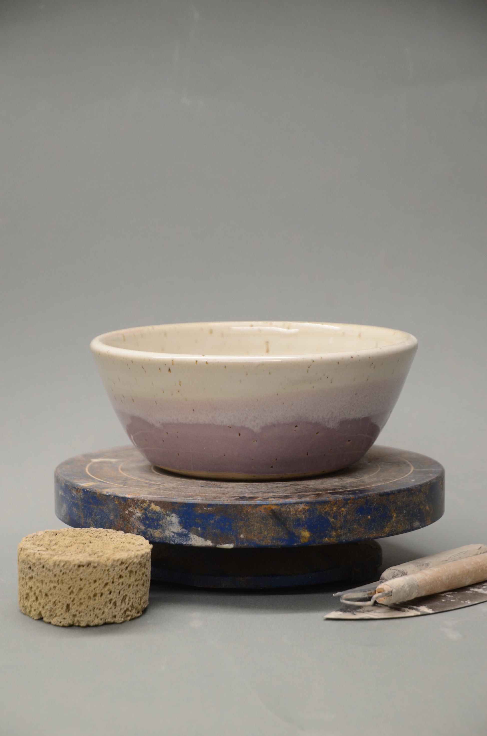 Diese Schale wurde von mir per Hand an der Töpferscheibe aus Steinzeugton gedreht, abgedreht und nach einem ersten Brand sorgfältig glasiert und ein zweites Mal gebrannt.