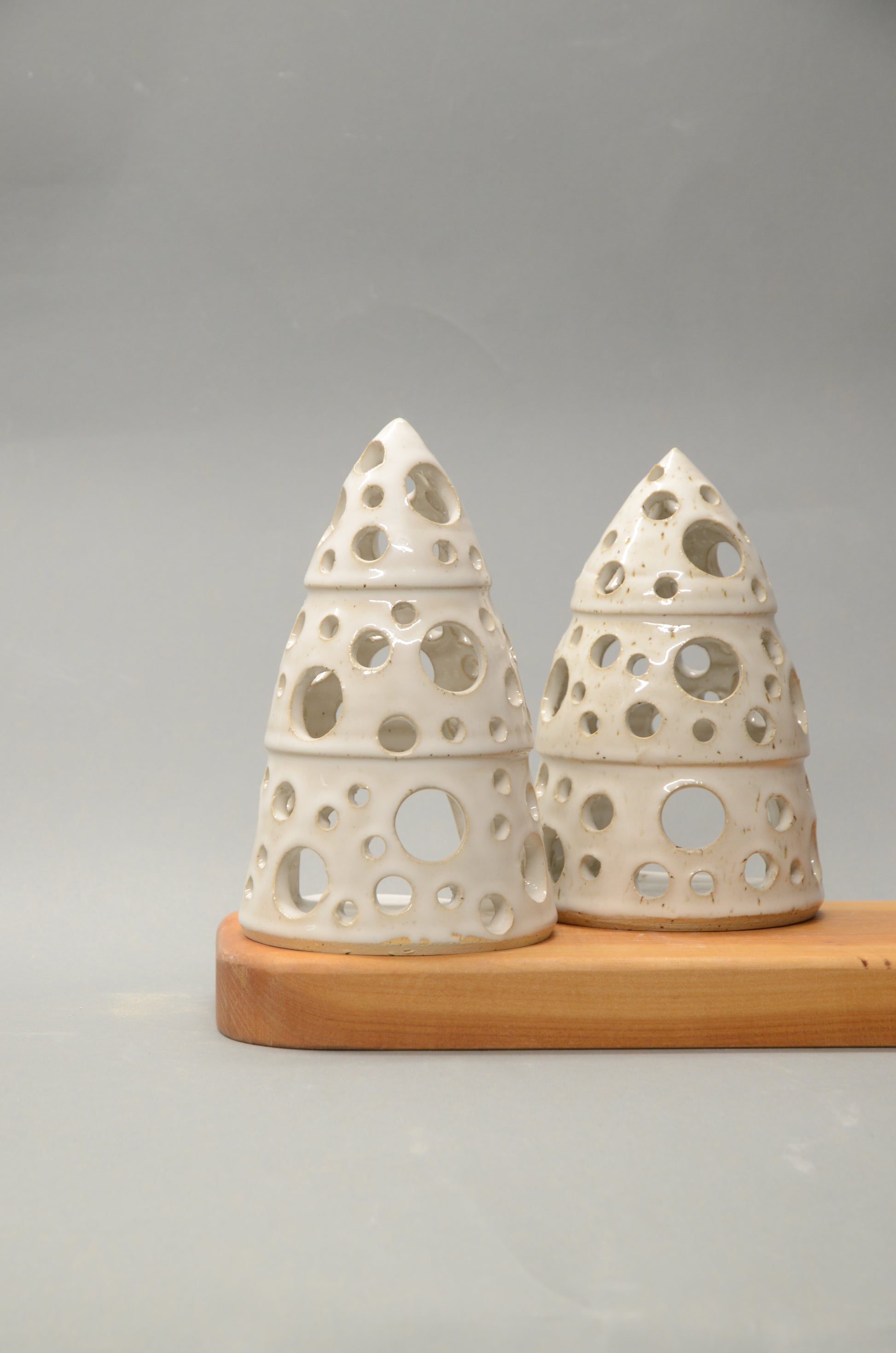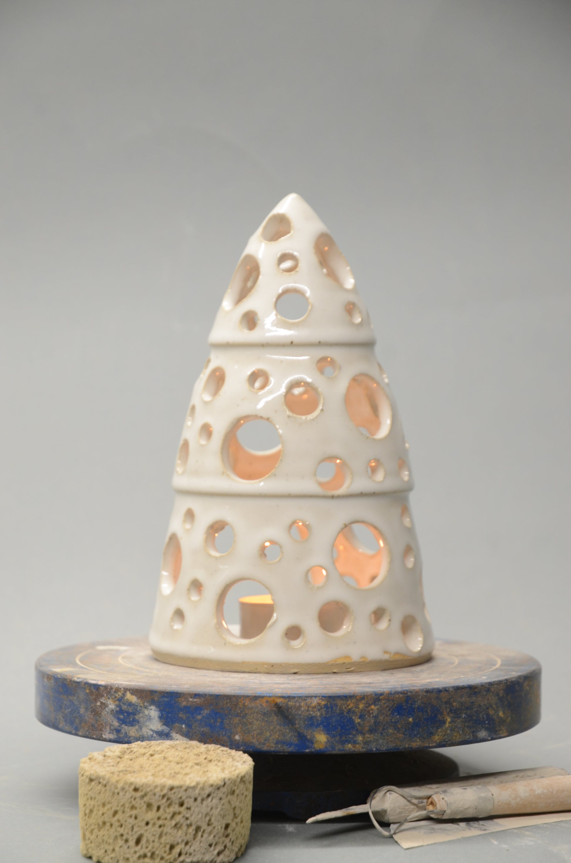 Dieser Lichterbaum wurde von mir per Hand an der Töpferscheibe aus Steinzeugton gedreht, abgedreht und nach einem ersten Brand sorgfältig glasiert und ein zweites Mal gebrannt.